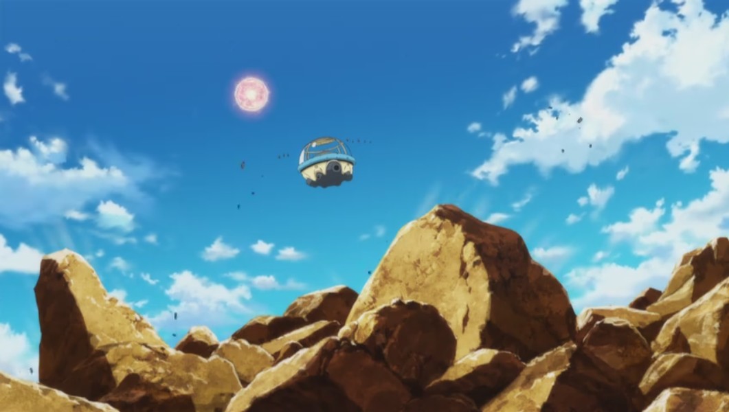 Gokuh y no destruye más que un trozo de roca.